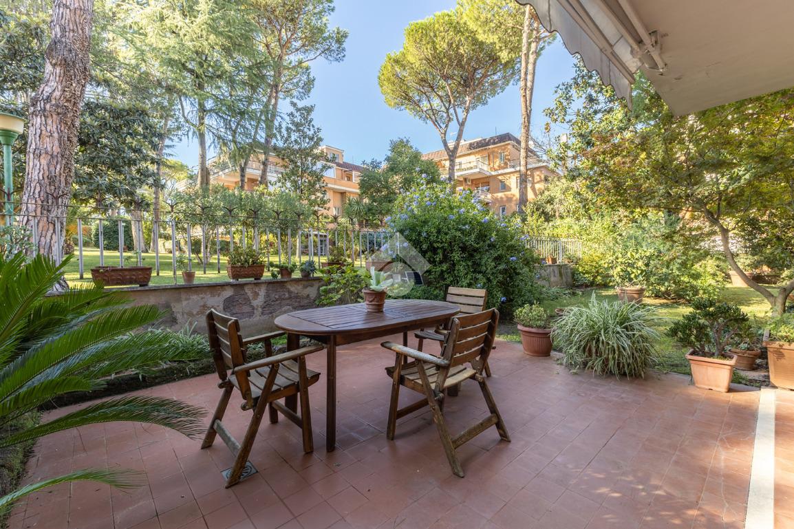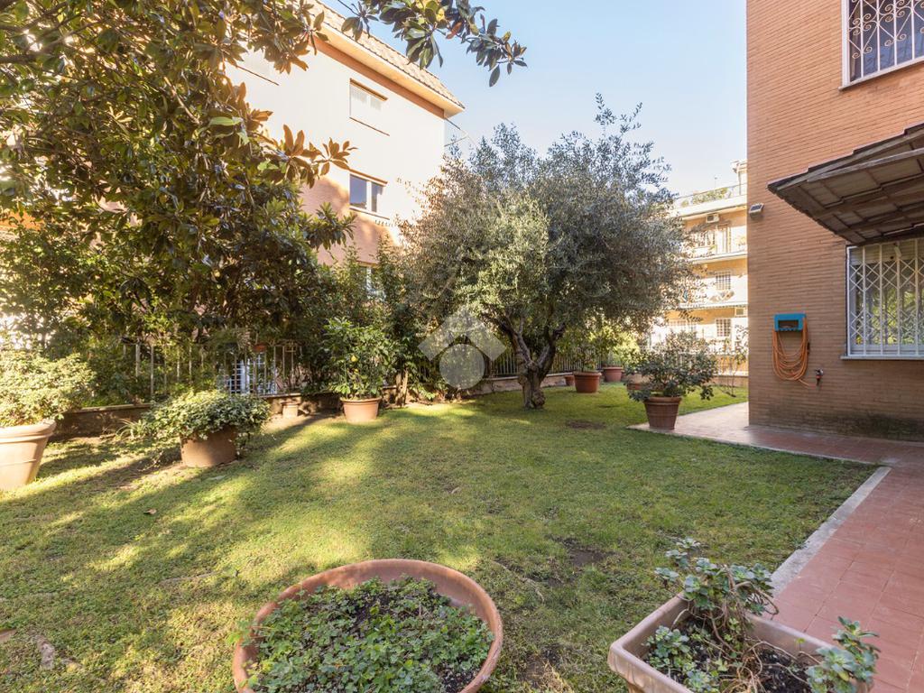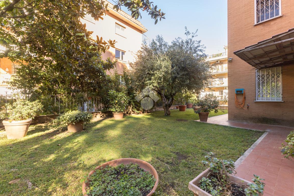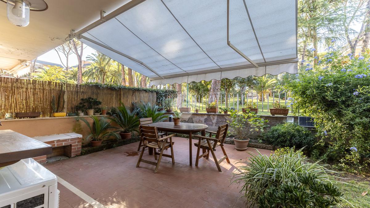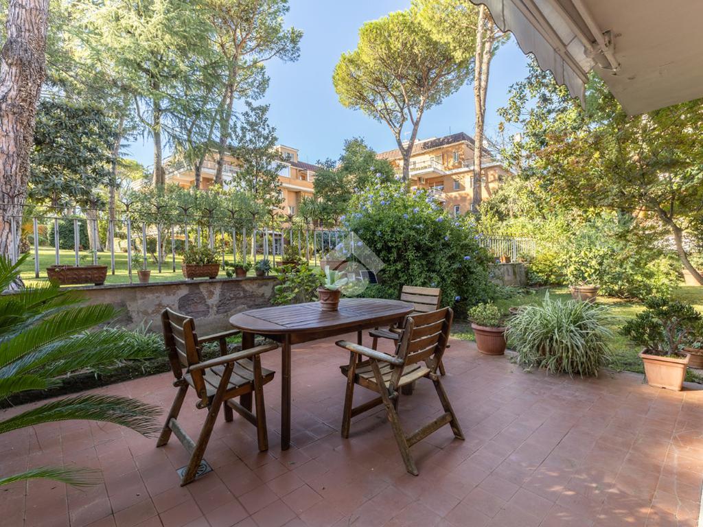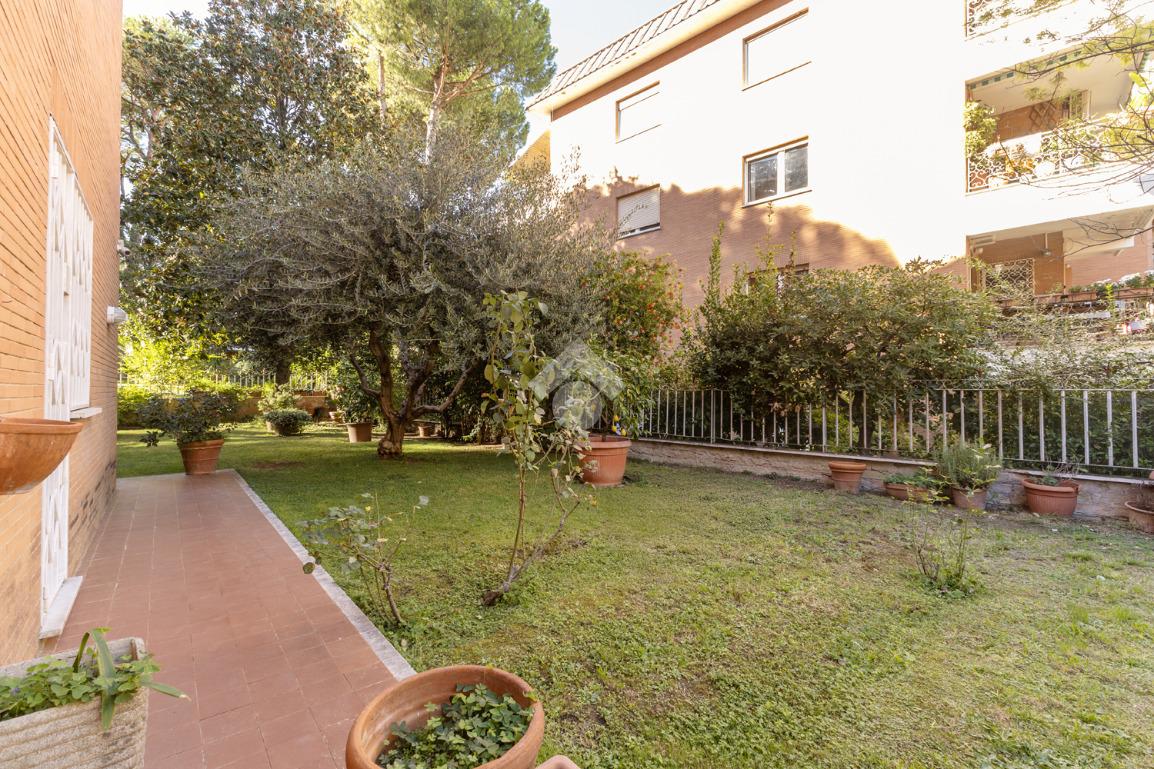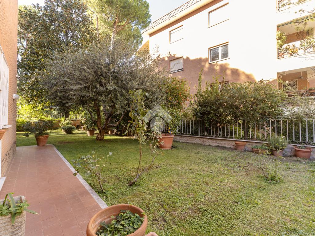 In Via del Casaletto, all'interno di un comprensorio immerso nel verde con servizio di portineria, proponiamo piano terra con giardino di circa 150 mq, composto da: ingresso, salone doppio, cucina abitabile, tre camere da letto, armadi a muro, tre bagni, studio e balcone.