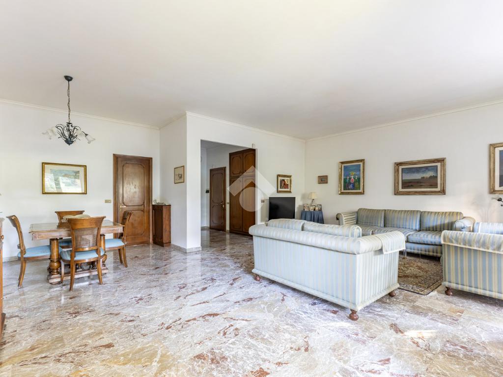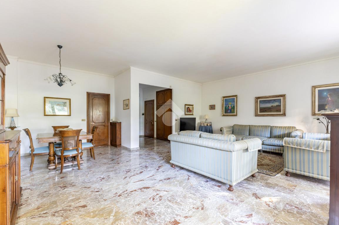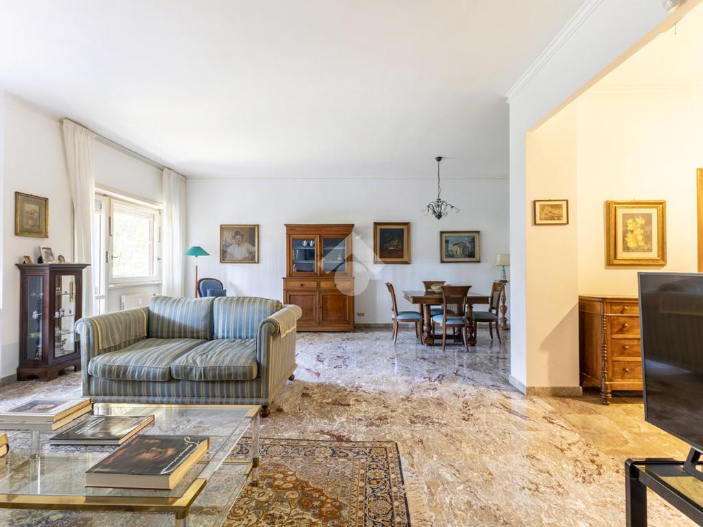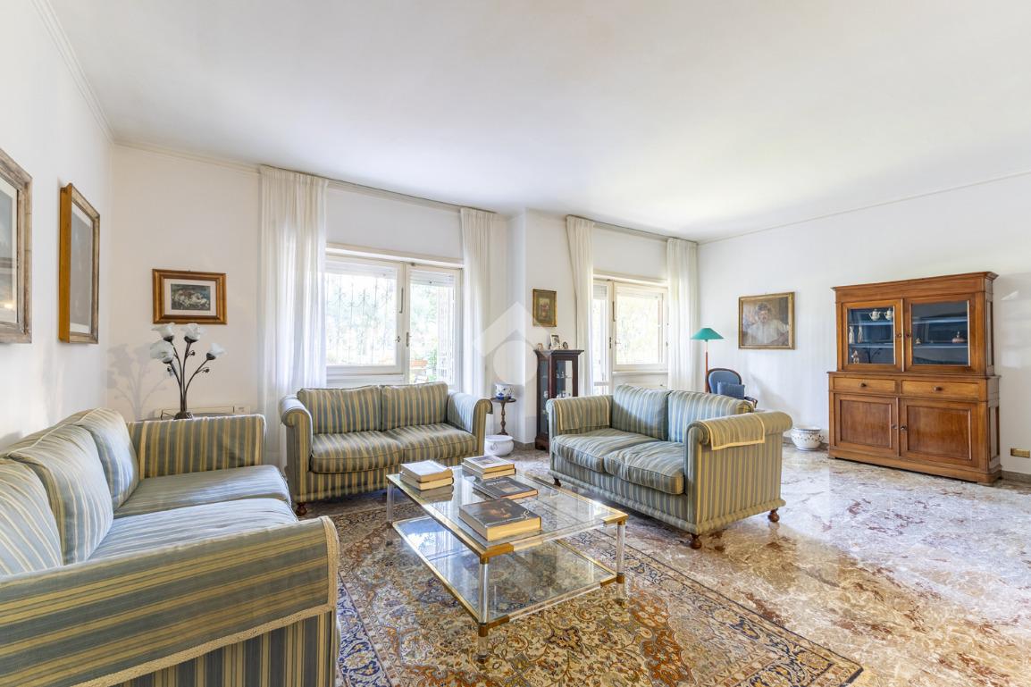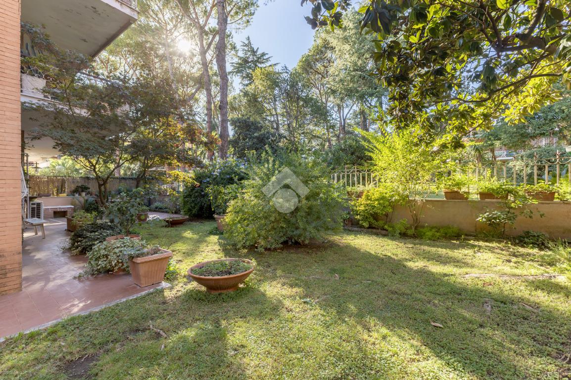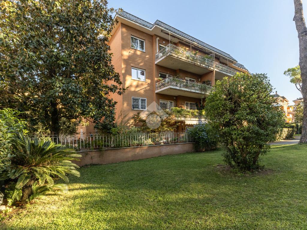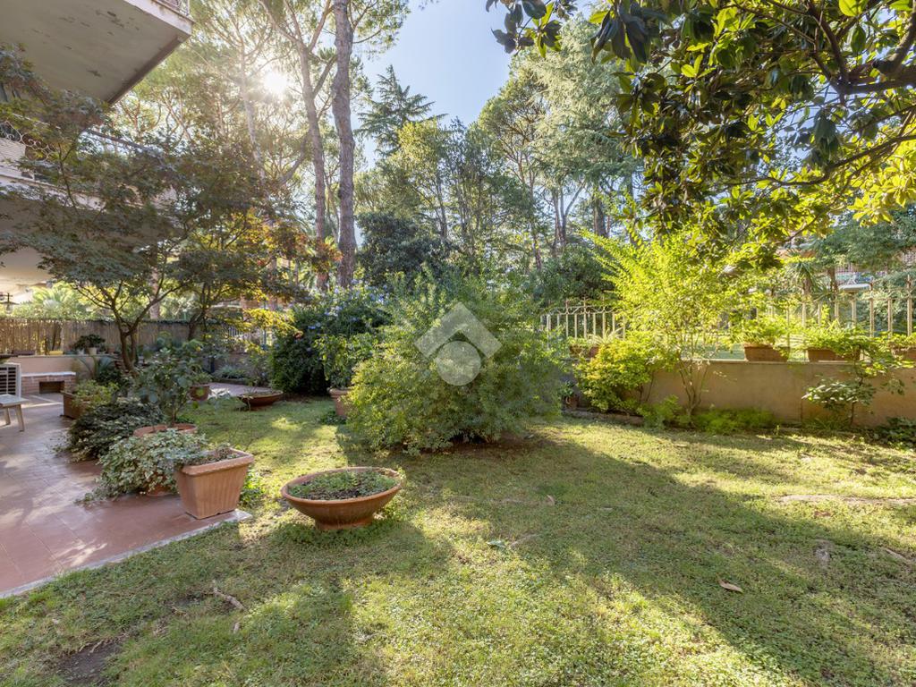 In Via del Casaletto, all'interno di un comprensorio immerso nel verde con servizio di portineria, proponiamo piano terra con giardino di circa 150 mq, composto da: ingresso, salone doppio, cucina abitabile, tre camere da letto, armadi a muro, tre bagni, studio e balcone.