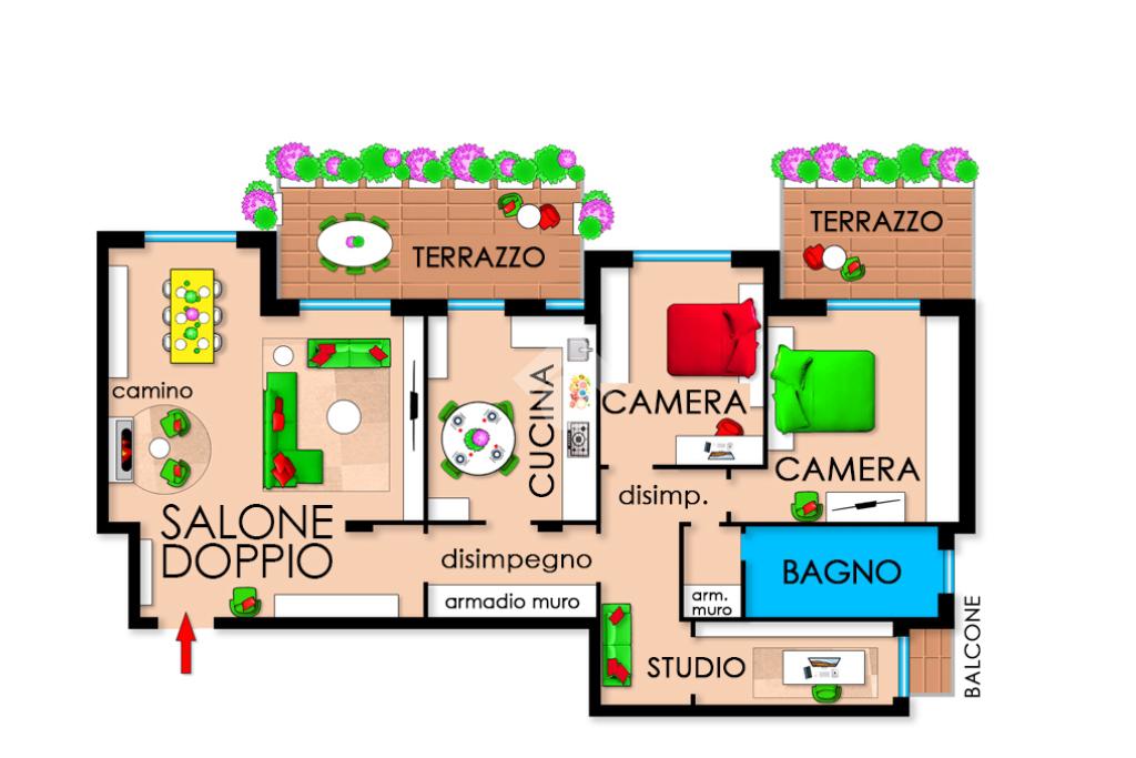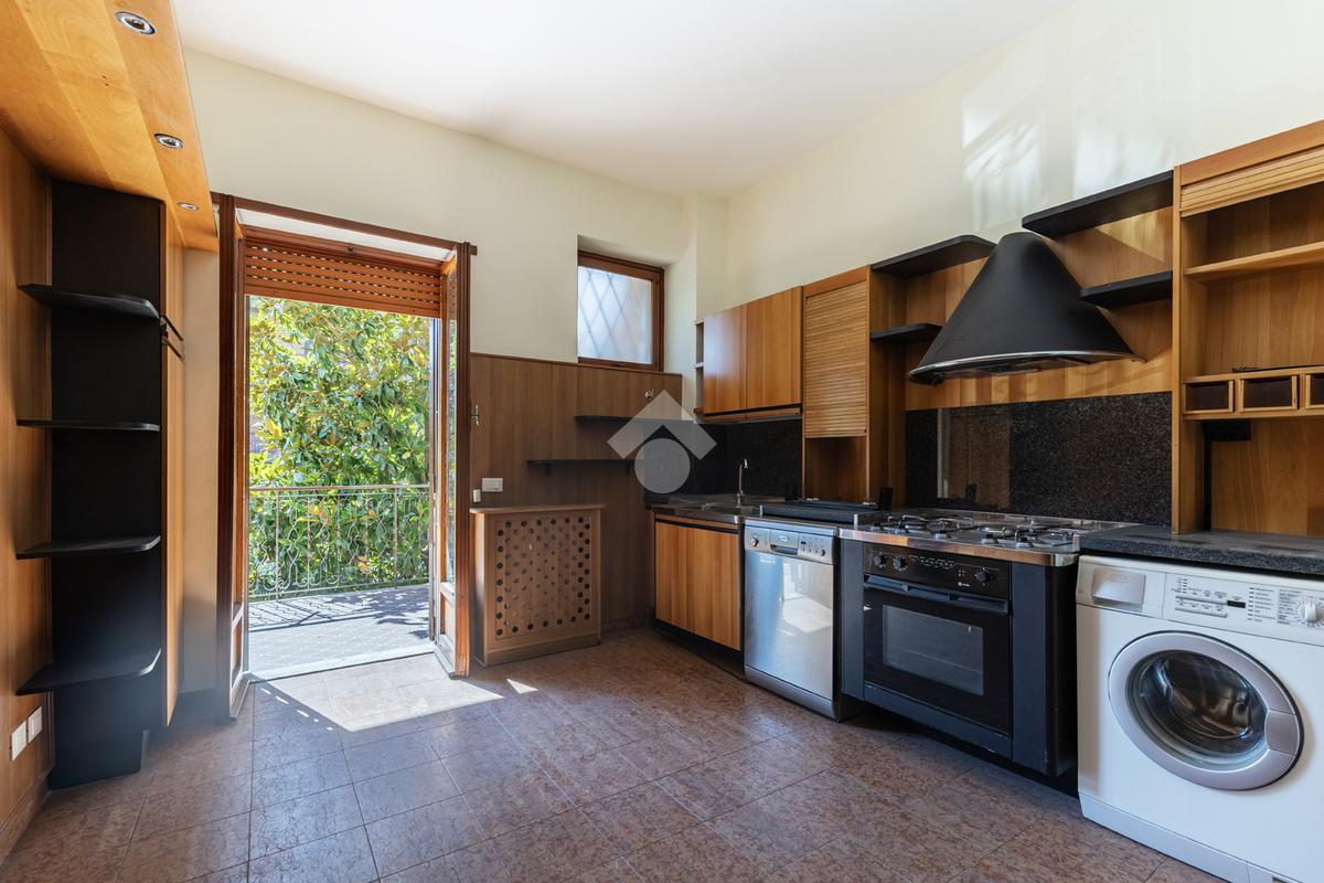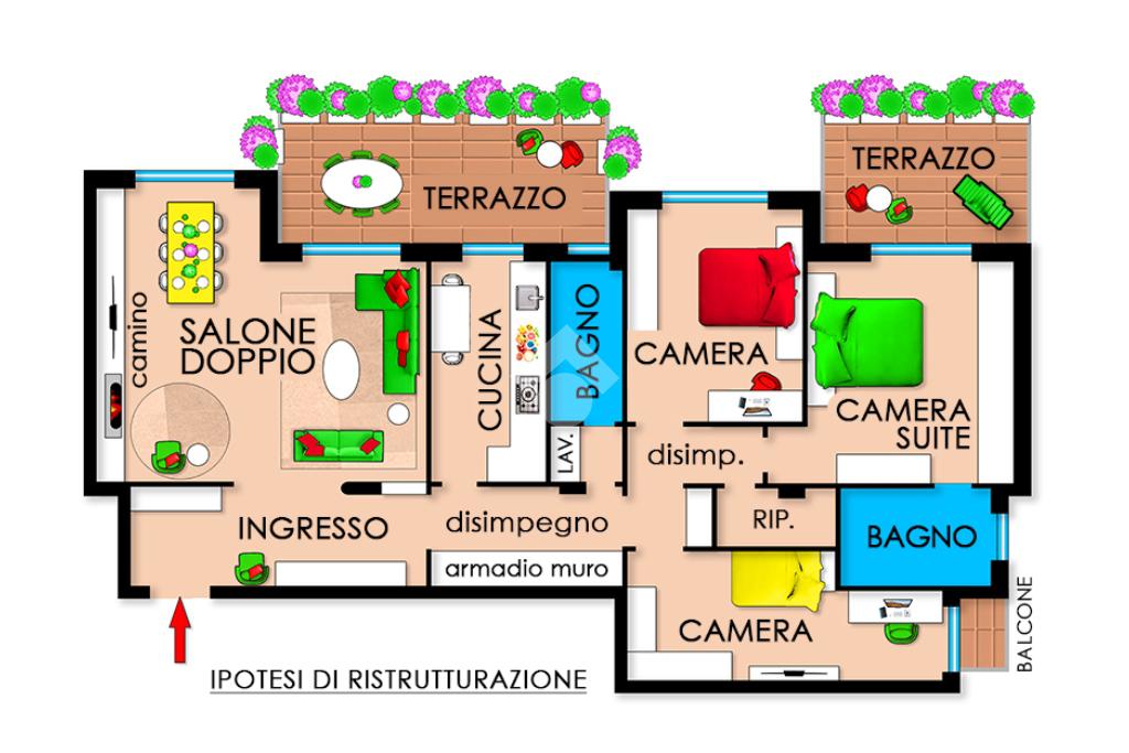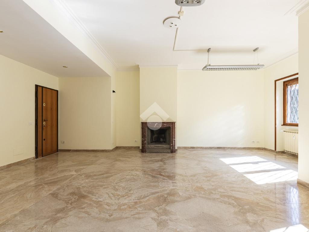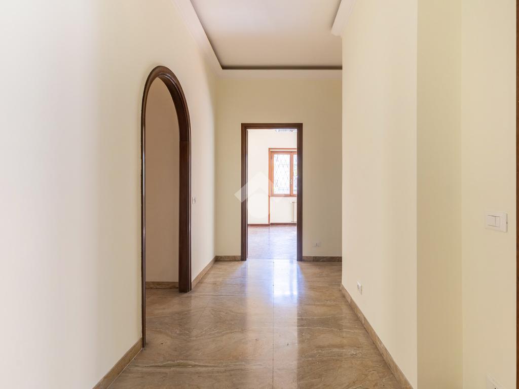 Situato all'interno di un edificio con ascensore, l'immobile si estende su una superficie di 145 mq ed è così composto: ingresso, salone doppio con camino, cucina abitabile, due camere matrimoniali, una camera singola, bagno, due terrazzi di 24 mq e un balcone. Riscaldamento centralizzato con valvole termoregolabili.