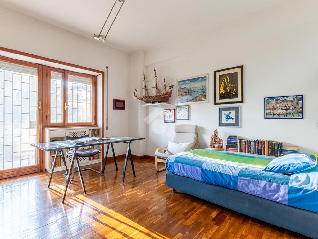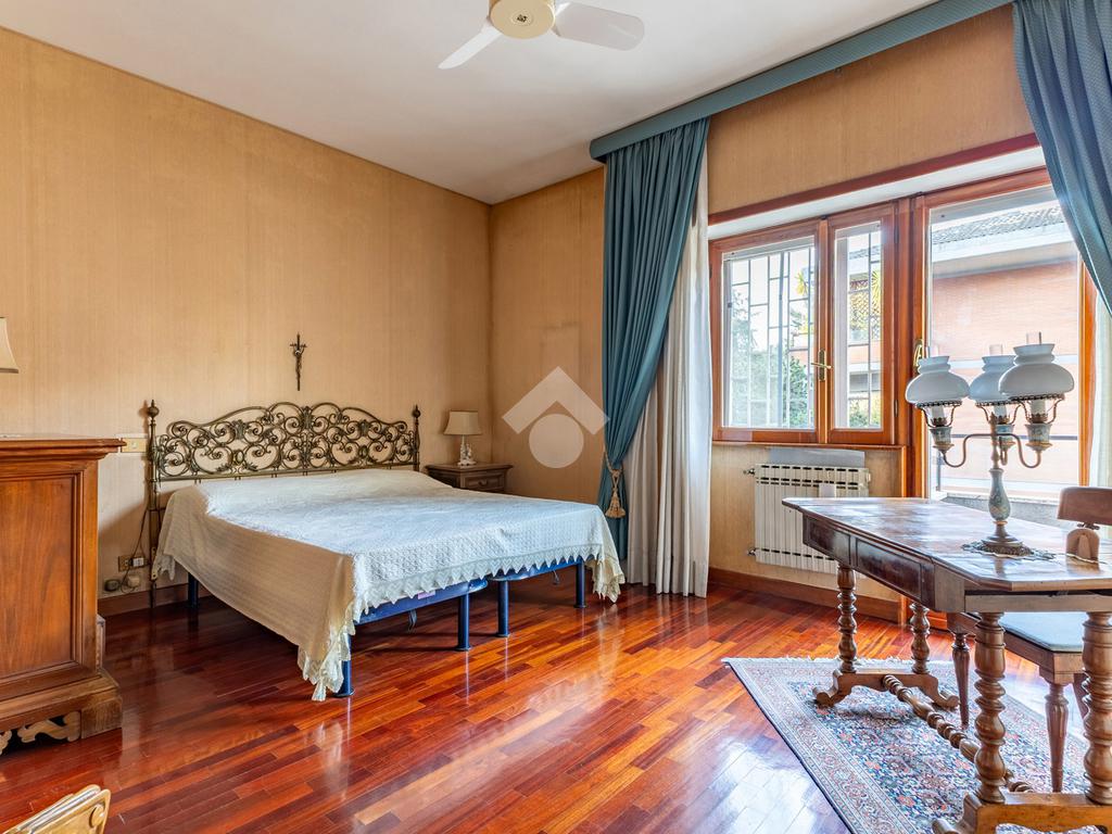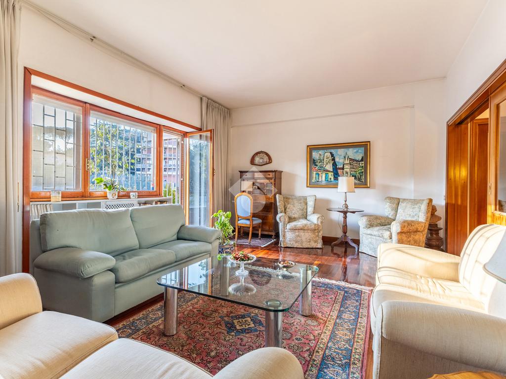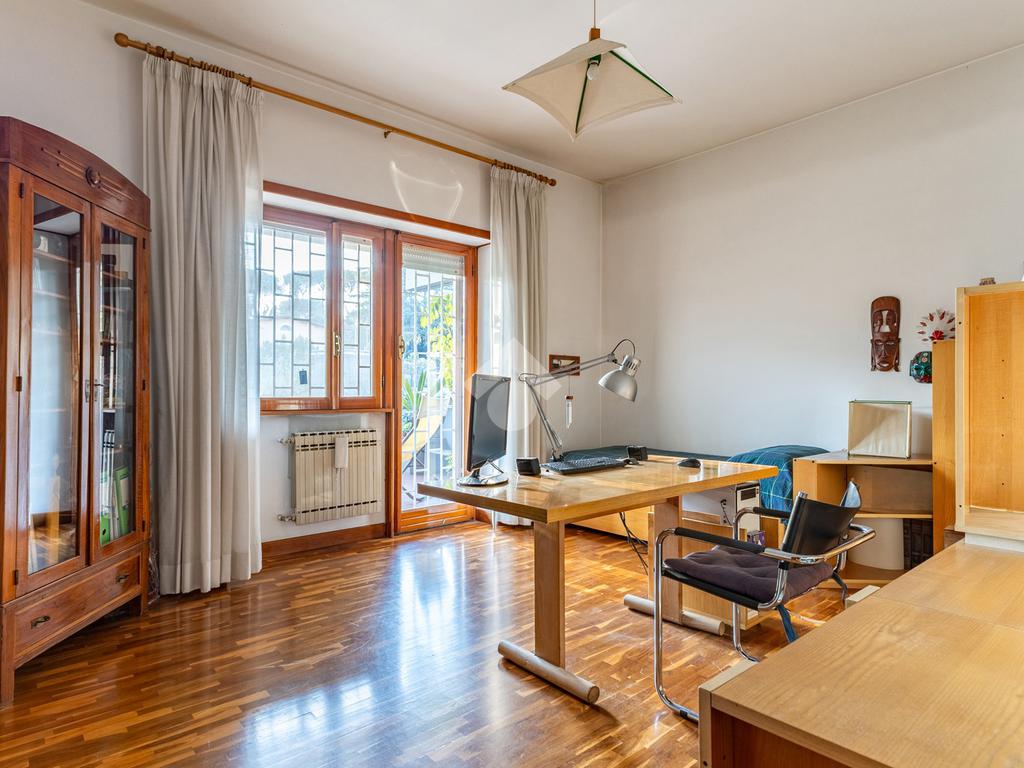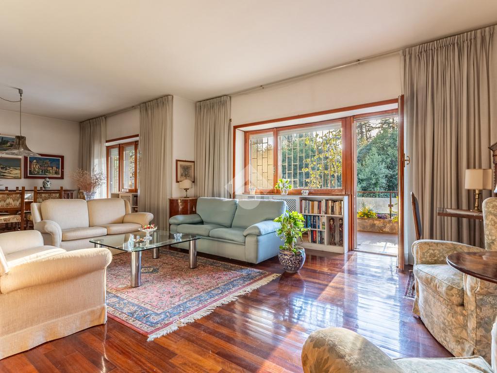 Via Tommaso Vallauri, adiacente a Via del Casaletto, all'interno di un signorile condominio circondato dal verde, proponiamo terzo piano così composto: doppio ingresso, cucina abitabile e sala da pranzo, salone doppio, tre camere da letto matrimoniali, tre bagni di cui uno ensuite, armadi a muro, terrazzo di 70 mq e due balconi. Completano la proprietà un box e un posto auto.